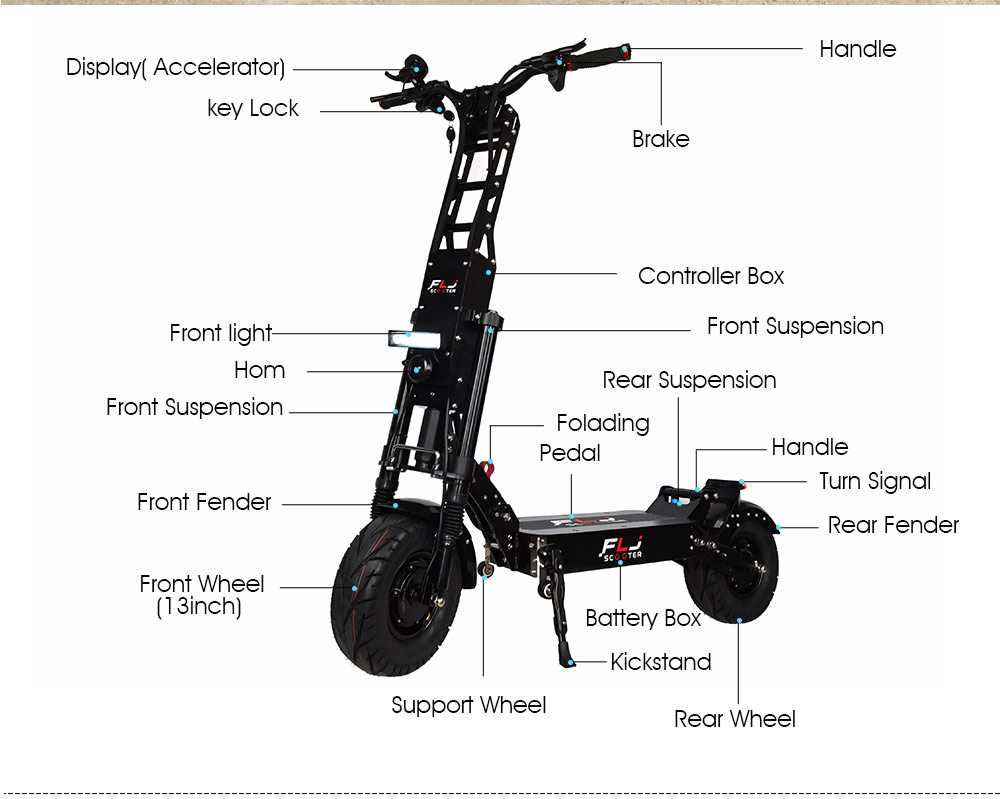 Rodas Fat de 13 polegadas para todo terreno / Patinete elétrico de 6000W / Patinete elétrico com motor duplo / Bateria de 40-80Ah / Autonomia de 80-250 km / Velocidade de 80-90 km/h (53 mph)
