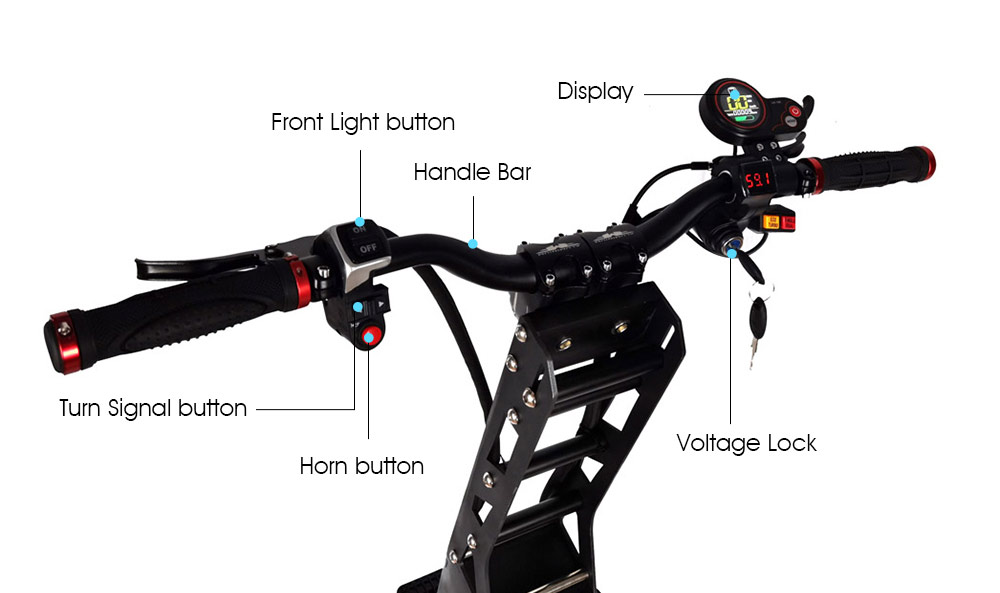 | | Bateria: 60V 40Ah / 50Ah / 100Ah (Entrada do carregador: 110V-240V; Saída do carregador: 67,2V/2A ou 5A) |